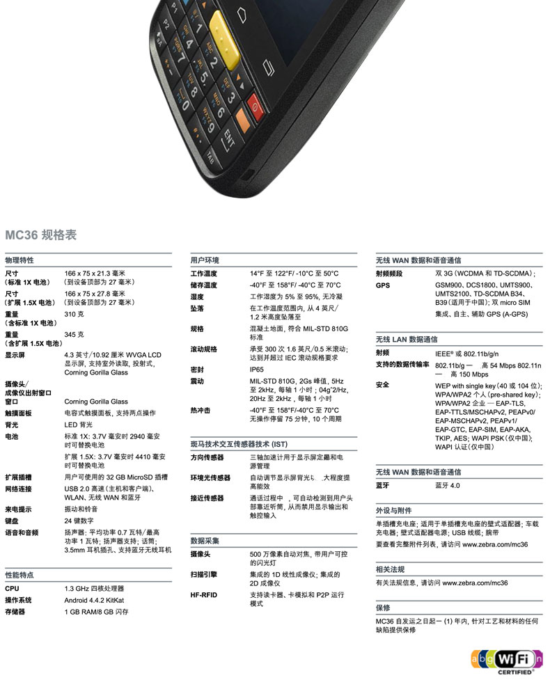 MC36由于出廠標(biāo)配不含原裝電源(充電器)跟數(shù)據(jù)線,跟普通安卓手機(jī)數(shù)據(jù)線電源通用!